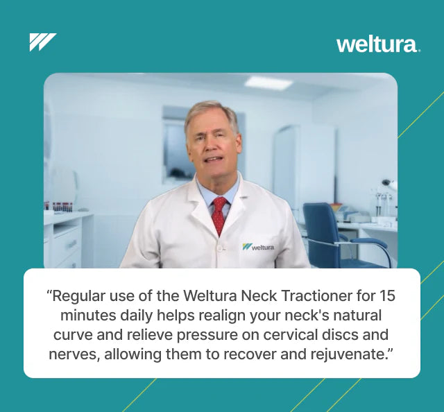 Weltura™ Traksiyon Cihazı, boyun disklerinizin nazikçe dekompresyonunu sağlayarak boyun ağrısını etkili bir şekilde hafifletir ve boyun hareketliliğini artırır.